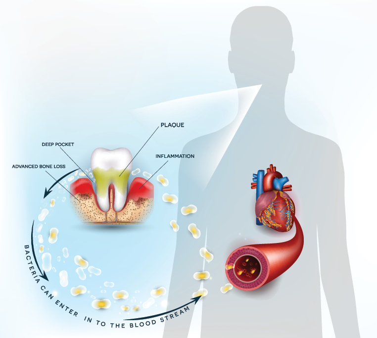 Several studies have suggested that there is a link between periodontal disease and an increased risk of heart attack. One theory is that the bacteria that cause periodontal disease can enter the bloodstream through the gums and travel to the heart, where they can cause inflammation and damage to the blood vessels. This can lead to the formation of blood clots and an increased risk of heart attack.
